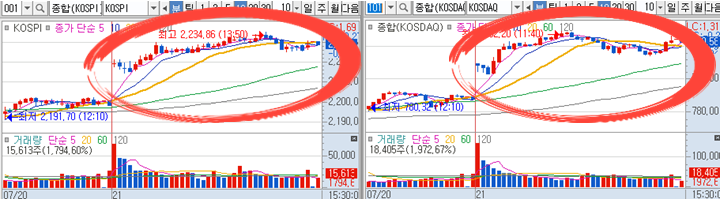 오늘 주식장은 제약주 위주로 크게 급등이 나온 장이였습니다. 요즘 시초가 종목을 선별해 놓으면 급등이 나오거나 상한가를 가는 경우가 굉장히 많은데 오늘 역시 물반 고기반인 먹을 거리가 굉장히 풍부한 장이였습니다.