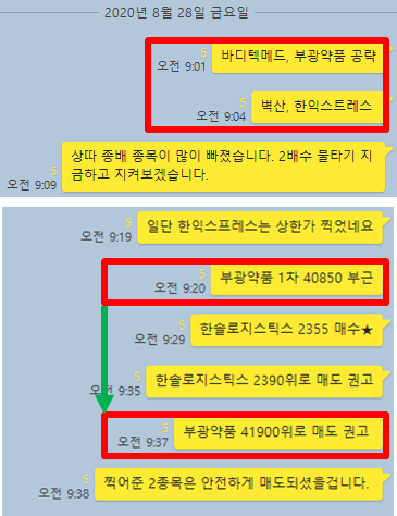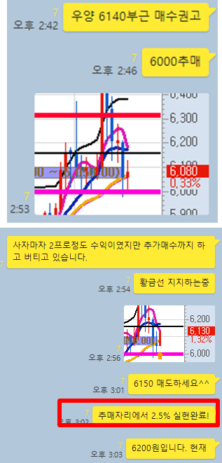 그럼 매매타점에 대해 카카오톡 대화내용과 차트를 보면서 자세히 설명 드리겠습니다.