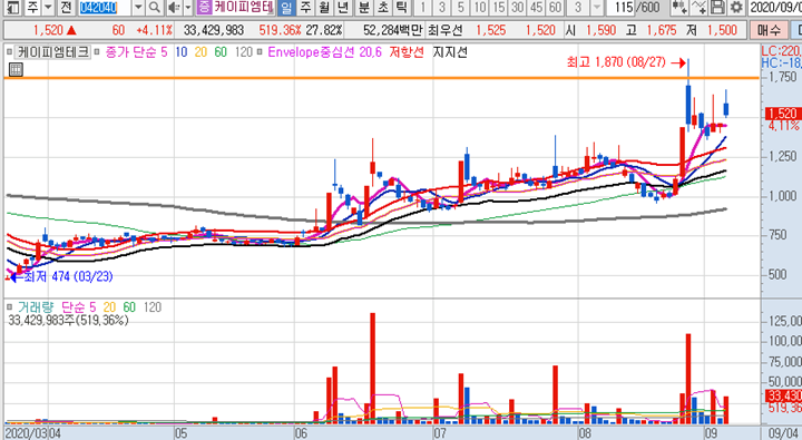 장전예상종목 : 케이피엠테크