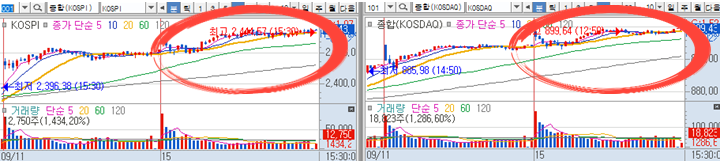 매수를 할 때는 지지선을 지켰다던지, 기관 및 외국인 투자자들의 수급 또는 큰 물량이 들어와서 확신이 섰다던지 이러한 근거가 있을 수록 수익으로 연결시킬 확률이 높습니다. 오늘 종목들을 살펴보니 항상 이야기하는 매수타점에서만 접근시에 수익이 발생 안했을리가 없을 정도로 높은 확률의 수익실현구간들이 많이 보였습니다. 요즘 주식장이 좋아서 왠만한 매매기법이 다 통하고 있습니다. 그러나 저의 매매방법과 공유하는 종목은 주식장과 관계없이 당일 바로 수익낼 수 있는 종목만을 대상으로 하니 언제든지 현찰만 들고있으면 적절한 매수타점을 찾아 수익으로 연결시킬 수 있습니다. 오늘 부족했다면 내일 다시 수익실현하면 되니 끝까지 포기하지 마시고 매일 반복해서 주식장에서 주도주만을 찾아서 공략하는 습관을 들이시기 바랍니다.