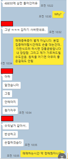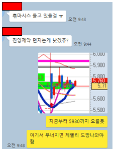 그러나 수제자가 뜬금없이 10시 22분에 저한테 상의도 없이 삼성전자를 매매하였다고 톡이 왔습니다.