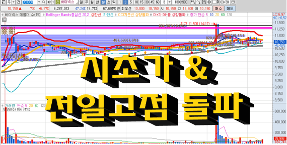 금요일에도 언급한 종목이고, 이종목이 장초반부터 전일고점을 돌파하기 위해 노력하는 모습이 보여서 오늘도 시세한번 크게 주겠구나 생각했습니다.