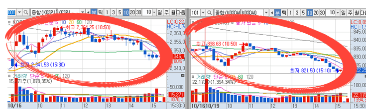 지난주에 이어 오늘 주식장도 전체적으로보면 하락으로 마감한 장입니다.