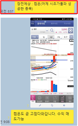그럼 전체적인 매매타점에 대해 카카오톡 대화내용과 차트를 보면서 자세히 설명 드리겠습니다.