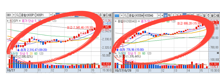 오늘처럼 국내지수가 하루 종일 상승할 때에는 그동안 눈여겨본 종목들도 덩달아 오르는 것을 볼 수 있었습니다.