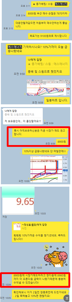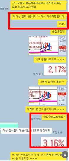 그럼 전체적인 매매타점에 대해 카카오톡 대화내용과 차트를 보면서 자세히 설명 드리겠습니다.