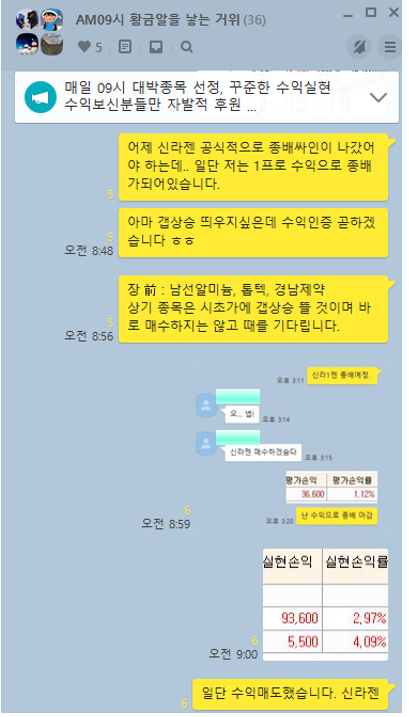 얄미운 존재 일 수 도 있습니다. 아래는 당시 채팅방 상황 및 수익인증 내역