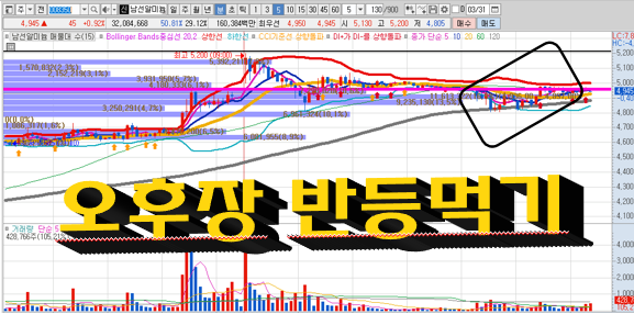 장 시작전에 발굴한 남선알미늄을 오후까지 매수하지 않고 방치하고 있다가 절대로 깨면 안되는 자리에서만 살짝 공략해보기 위해 단톡방에도 매수가격을 4820원으로 찍어 주었고,