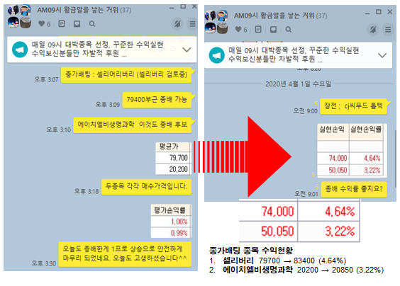 그럼 어제 종가배팅한 종목부터 공개하고 설명 드리겠습니다.