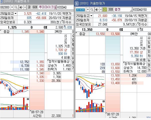 다음은 종가배팅 종목의 결과입니다. (종목 : 루미마이크로, 웹젠)