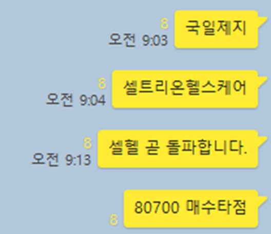 종목은 셀트리온헬스케어와 국일제지 입니다.