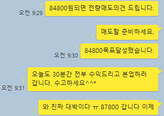 항상 9시30분이내 매매를 종료하는 걸 목표로하고 늦어도 10시까지는 왠만하면 전부 현금화시키는 전략으로 하고 있습니다.