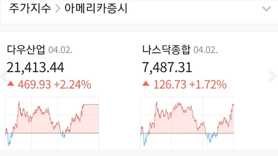 어제 종가에 배팅한 종목이 2종목있어서 아침 출근길에 미국지수를 확인했습니다.