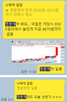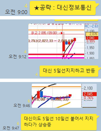 또한 오늘의 공략종목 또한 “유효한 매수타점”에서 수익이 충분히 발생할 수 있었습니다. 그럼 카카오톡 대화내용과 차트를 보면서 설명드리겠습니다.