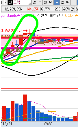 오텍 3분봉 입니다. 장전예상종목으로 갭상승출발이후 시초가 돌파가 나오면서 피봇2차저항을 돌파하였으며 18분만에 15%이상 상승하였습니다.