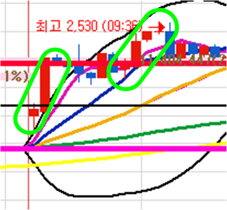 화신정공 3분봉 입니다. 오늘의 시초가 공략종목으로 앞서소개드린 삼화네트웍스랑 같은 패턴으로 시초가 돌파가 나오면서 급등했으며 시초가에서 양봉4개 그리고 10일선 지지후 양봉4개이상이 나오면서 충분한 수익을 실현할 수 있었던 종목입니다.
