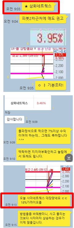 오늘은 장전예상 1종목과 시초가 공략종목 1+1개를 선정하였습니다. 특히 오늘 시초가 ★ 공략종목인 삼화네트웍스에서 시초가 돌파가 나오며 큰 수익이 나왔으며, 종가배팅 후보였던 신성델타테크가 장중 상한가에 진입하였습니다. 그 외 다른 종목에 대한 매매타점도 함께 리뷰하겠습니다.