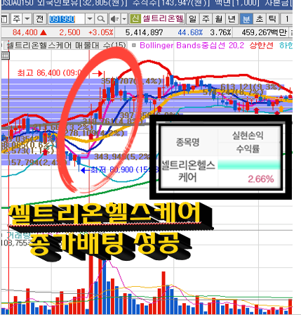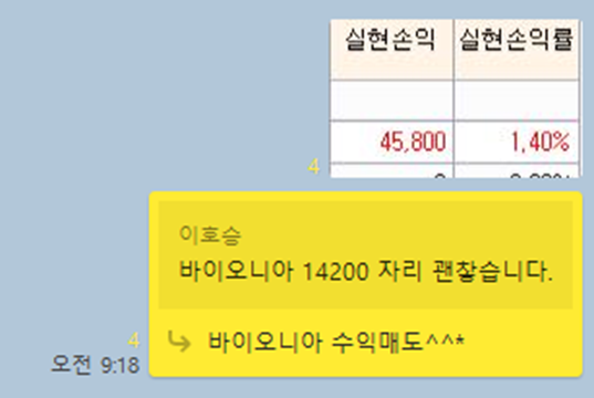 매수직후 바로 오르며, 1프로이상의 수익을 주었기에 바로 수익실현을 하였습니다. 나중에 알게된 사실인데 이종목은 오후2시경에 다시 전일고점을 돌파하며, 피봇2차저항선 근처까지 급등을 하였습니다.