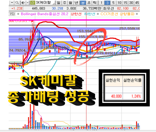 매수할 때가 3시20분이라서 바로 매수가 안되고 동시호가 진행시에 3시30분에 81900원이라도 억지로 체결을 시켜놓고, 종가배팅으로 넘어갔습니다.(수익인증화면은 대신증권 크레온 모바일用)