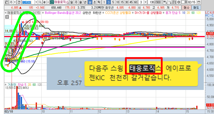 태웅로직스3분봉 입니다. 연휴전 다음주 스윙으로미리 언급했던 종목으로 오늘 시초가에 이미 6%이상 상승이 나왔습니다.