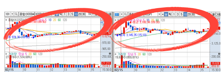 시초가 급등 이후 잠잠했던 국내 종합지수 모습입니다. 대부분 수익이 이른 아침시간에 가능 하기 때문에 종가배팅 및 시초가만 한 경우 특별한 손절없이 마무리 될 수 있었던 주식 장 입니다.