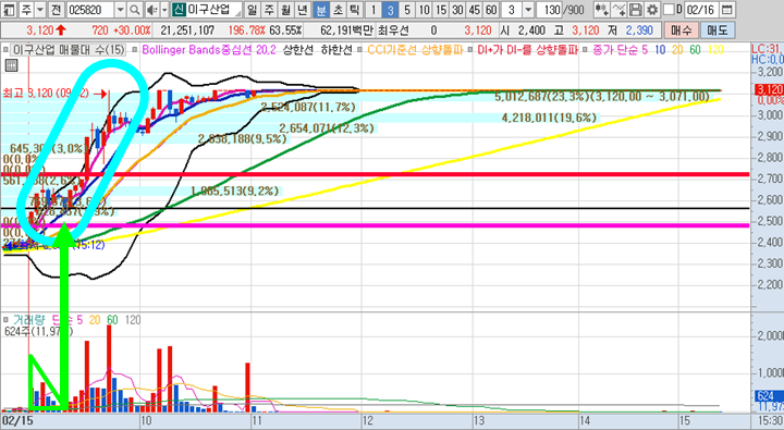 썸에이지 3분봉 입니다. 어제 상한가 진입이후 장마감후 크나큰 악재 소식에 의해 갭하락 출발하였지만, 볼린저밴드 바깥매매의 일환으로 오늘 시초가 공략종목으로 선정했었습니다. -6%에서 9분만에 12%까지 급등을 했으니 최저점에서는 18%의 수익이 단 9분만에 발생하였던 종목입니다.