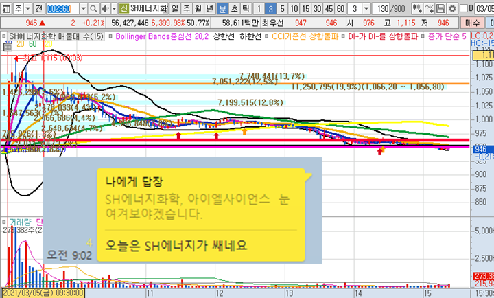 sh에너지화학3분봉 입니다. 원래 이종목은 스윙으로 공개한 종목인데 오늘 시초가에 18%이상 폭등이 나왔습니다.