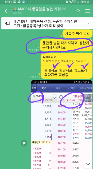 1시경 오후에 사료 관련주에 돈이 몰린다고 이야기하고, 1시간이 지난후 모습 (아래)
