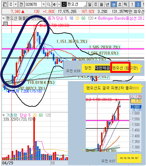 팬오션3분봉 입니다.