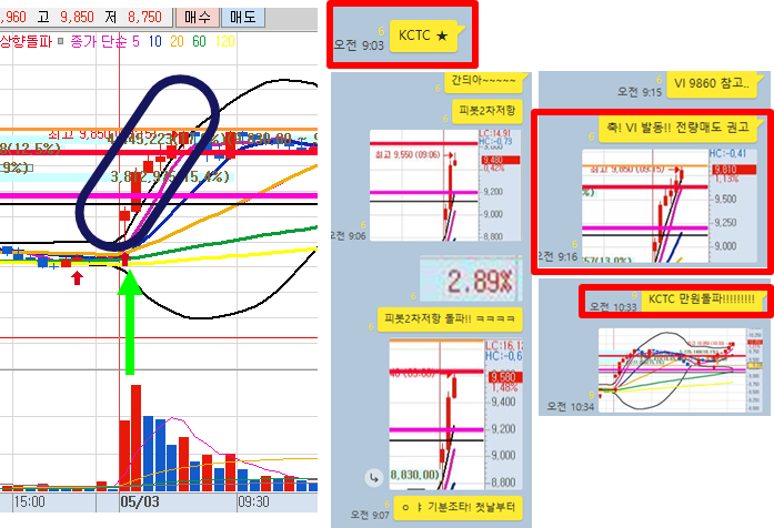 오늘은 공매도 재개 첫날로 바이오 관련주에서 큰 하락이 있었습니다. 그럼에도 불구하고 제가 당일 직접 선정한 주도주 모두가 큰 급등이 있었으며 특히 KCTC가 18%이상의 큰 급등이 오전중에 있었습니다. 또한 장전예상 종목 또한 큰 수익이 있었습니다.