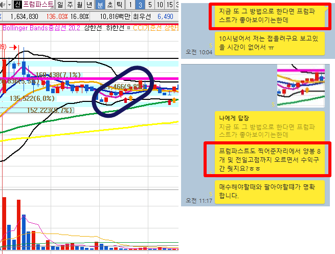 트럼파스트3분봉 입니다. 이 종목도 최근 공략했던 종목으로 수익 실현완료 이후 오늘 다시 매수타점이 왔습니다.