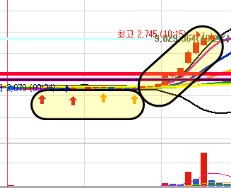 급등하기 전 상황을 보시면 흐름이 비슷한 것을 알 수 있겠지요?