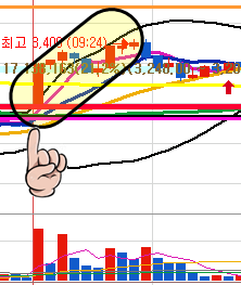 어제 장마감전 언급한 종목으로 오늘 3분만에 피봇2차 저항위로 상승하며 3%이상의 수익이 나온 종목입니다.
