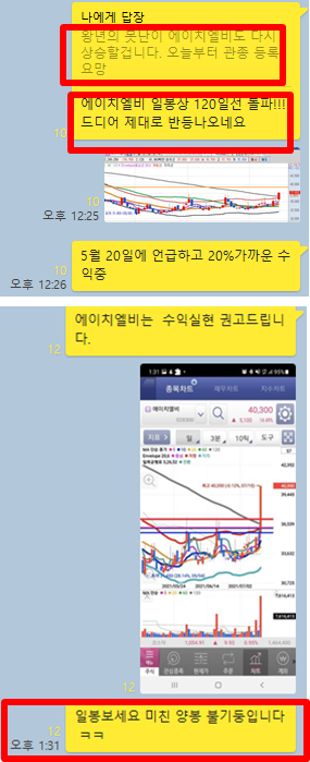5월 20일경 다시 상승할 것이라는 예측과 함께 공유한 종목으로 오늘의 큰 급등은 일봉상 120일선을 강하게 돌파하였으며, 이제 역배열 차트에서 정배열 차트로 바뀌면서 더 큰 급등을 기대할 수 있는 종목이되었습니다.