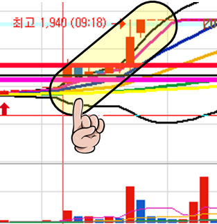 지난주에 이어 오늘도 장전예상 종목으로 선정하여 공유한 종목으로 장전예상으로만 1주일안에 무려 3번이나 언급된 종목입니다. 시초가에도 바로 수익이 발생될 수 있었고, 눌림목 매수타점마다 수익이 발생했고 오전 장중 최고 20%이상의 급등이 나왔습니다. 첫번째 표시된 구간이 눌림목 10일선타점에서 5%이상, 두번째 표시된 구간이 120일선타점에서 3분만에 13%이상 폭등시세가 바로 나왔습니다.