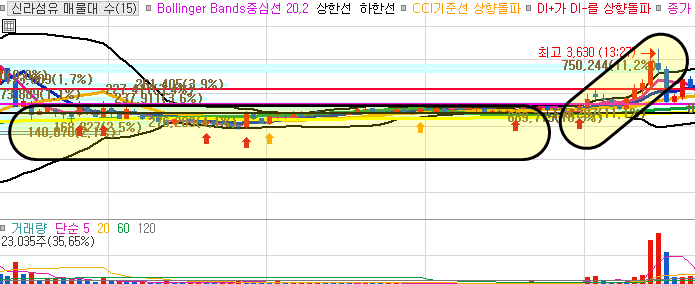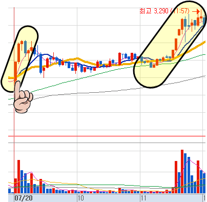 그러나 120일선에서 크게 벗어나지않고 계속 유지되고 있었기에 오후장에 다시 8%가까운 급등시세가 나왔습니다.