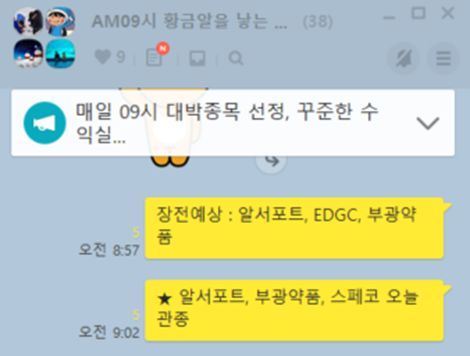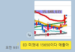 EDGC의 경우 초반 예상과 달리 바로 급등하지는 않고 지지선까지 빠져주었습니다. 오늘의 관종에서 탈락처리를 하려고 하였으나, 그 구간을 깨지않는 걸보고 매수가격을 14750부근으로 제시하였으며, 역시 그 제시한 부근이 최저점으로 그 이후에 네모박스안을 보시는 것처럼 한시간동안 상승하였습니다.