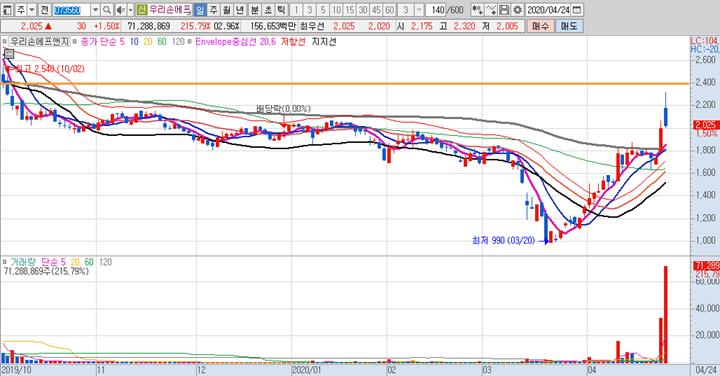최근 포천시에서 아프리카돼지열병(ASF)에 감염된 멧돼지가 발견됐다는 소식에 우리손에프앤지가 이틀째 강세 인데, 그 강세인 2일 모두 저희는 거래를 하였습니다. 이제 다시 들어가려면 다시 하락시에 안전한매수타점에서만 하겠지만, 2일간 이종목 덕택에 모두가 행복했습니다.