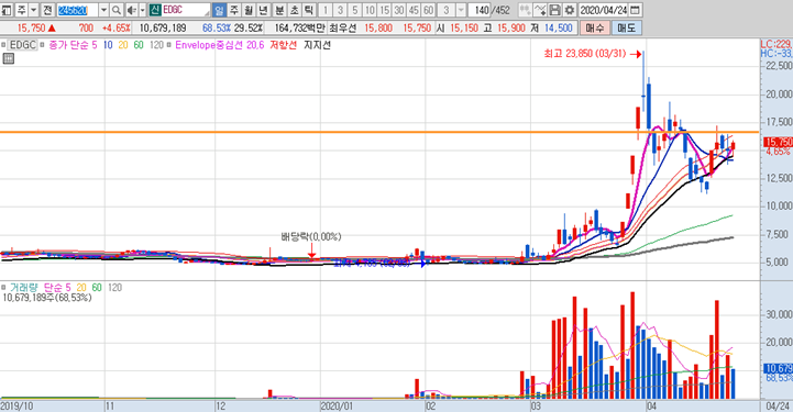 EDGC는 코로나 19 진단키트 관련주로서, 최근 저의 매매일지에 정말 자주 등장한 매매 종목입니다.