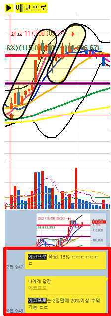 장전예상 종목으로 오전장중 20%이상 급등이 나왔습니다. 가야할 자리에서 바로 반응이 나와주니 이런 큰 급등의 행운이 있었던 종목입니다.