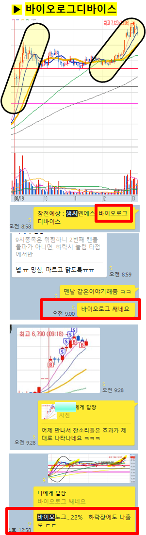 장전 예상 및 시초가 공략으로 선별한 바이오로그는 장중 최고 22%이상의 급등이 있었습니다.