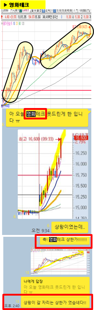9시3분 돌파 종목 영화테크는 오후장에 결국 상한가에 진입을 하였습니다.