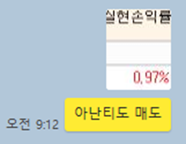 첫번째 사진은 제가 언급한 종목이 전혀 아닌 종목에서 손절을 했다는 안타까운 사연입니다.