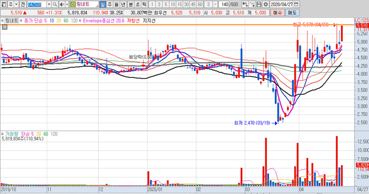 링네트의 일봉 차트 입니다.