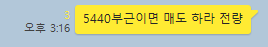 최초 발견한 시간이 1시 29분에 언급을 하고 있습니다. 그러나 전일고점 돌파 직전이였으나 “바로 들어가지 않는다“ 라고 언급을 하고 있었으며, 차분하게 1차와 2차 진입 구간을 알려주고 있습니다. 역시 2차 매수 타점인 5195부근 까지만 하락하고 매수타점 손가락 사진에서 부터 쉬지 않고 상승하며 전일고점 까지 돌파하고 피봇2차저항에 마무리가 된 아주 강한 종목이였습니다. 시간외 거래에서도 강세를 보였으며, 내일도 갭상승 나올 확률이 굉장히 큰 종목입니다.