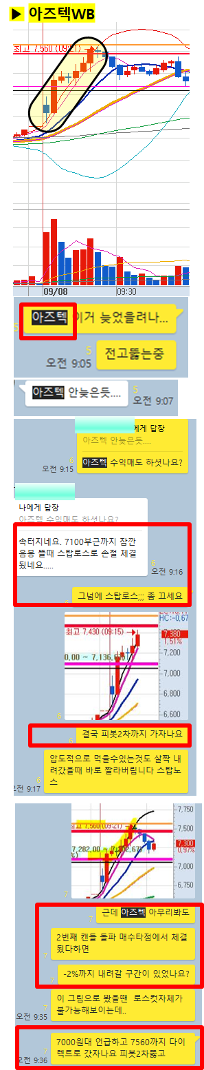 2일전 가장 좋은 자리에서 종가배팅으로 추천하고 어제도 크게 급등하고 오늘도 급등하며 장중최대 25%이상의 급등이 2일간 지속되고있습니다. 이미 찍은 종목이라 잘 알고있었듯이 이종목 또한 시초가 적정한 매수타점에서 피봇2차까지 바로 급등이나오며 쉽게 수익을 실현할 수 있었습니다.