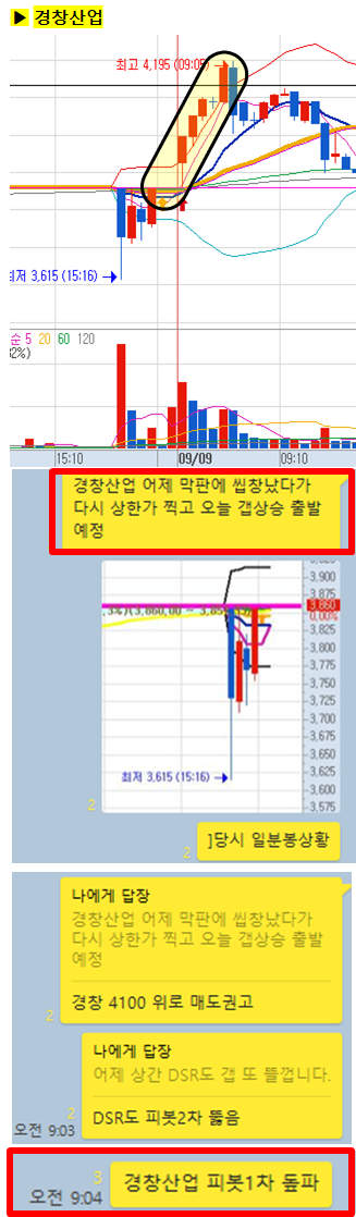 장 시작 3분전 공유한 종목으로 6분만에 9%가까운 급등이있었습니다.