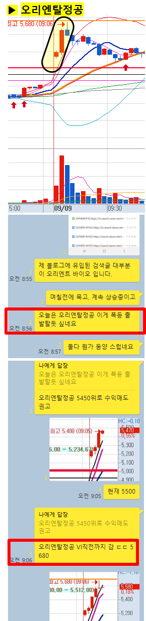 장 시작 5분전에 공유한 종목으로 시초가 돌파 이후 단 6분만에 17%이상 폭등이 나왔습니다.