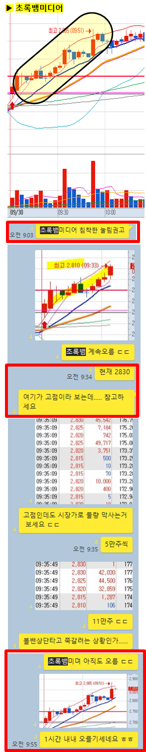 오늘 9시3분경 공유한 종목으로 51분만에 9%가까운 급등이 있었습니다.