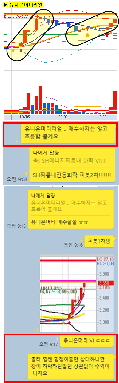 최근 상승추세 종목이지만 전날 하락했던 종목으로 오늘 공략하기에 부담없던 종목이였습니다. 시초가4%출발한 종목이 40분만에 피봇2차저항을 돌파하며 18%이상 급등이 나왔습니다.